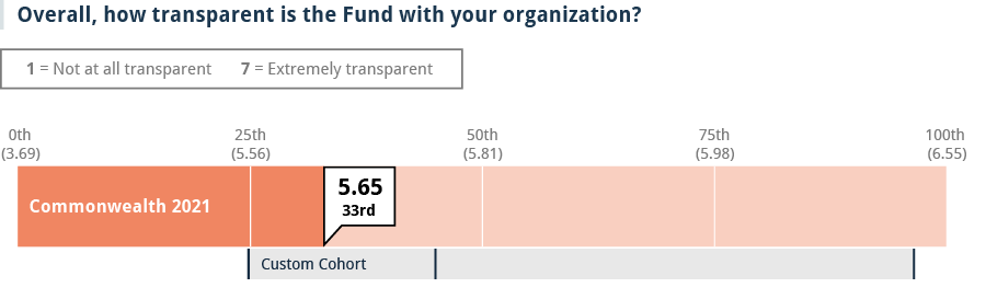 Greater transparency. Ratings for overall transparency are also lower than those for other funders surveyed.