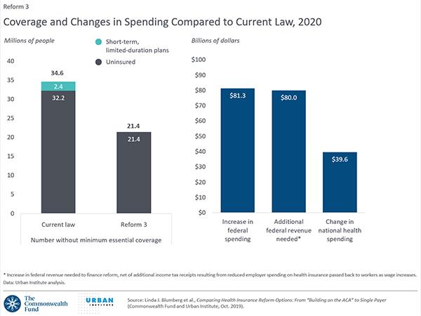 Source: Linda J. Blumberg et al., Comparing Health Insurance Reform Options: From “Building on the ACA” to Single Payer (Commonwealth Fund and Urban Institute, Oct. 2019). https://doi.org/10.26099/b4g6-9c54